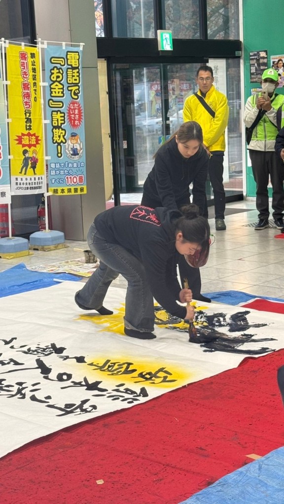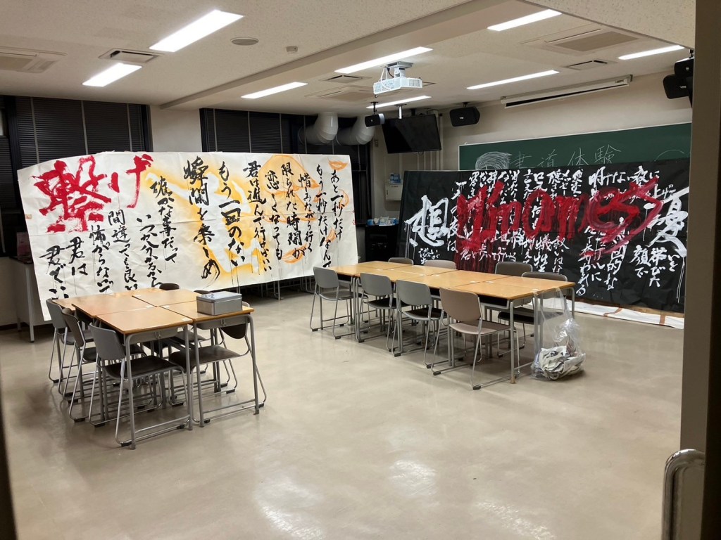 私たち書道部は個人の作品制作、パフォーマンスを主な活動としています!自分のペースで活動を行うことができ、部員同士も仲の良い、自由度の高いサークルです!おしゃべりを楽しむ時間も沢山あり、活動も選べるため書道未経験の方も大歓迎です!!ぜひ見学やSNSなどでの質問、沢山お待ちしています!