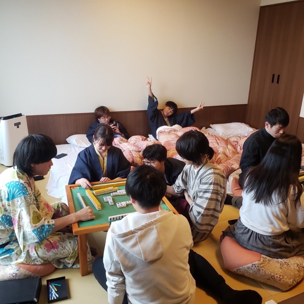 麻雀部では、毎月の部内戦の他に夏には阿蘇に行く夏合宿と春休みに宿泊を含んだ春合宿を行っています!