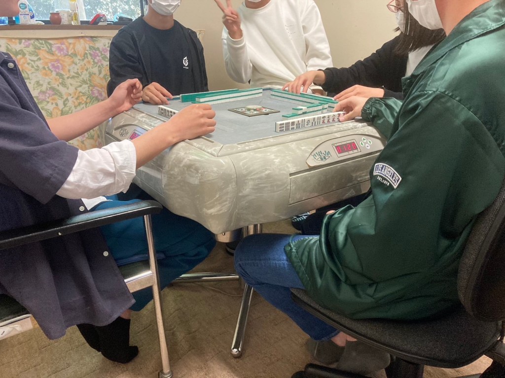 私たちは日々学内にある部室で自動麻雀卓を使い、健康麻雀をしています!