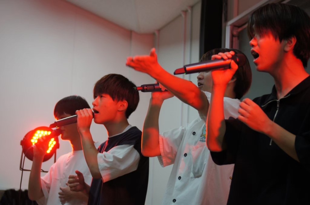 楽器を使わずに、声だけで様々な曲を演奏する「アカペラ」を行っています。文化祭や月1の部内ライブ、外部のイベント出演や全国大会出場等を目標とし日々の練習に励んでいます!